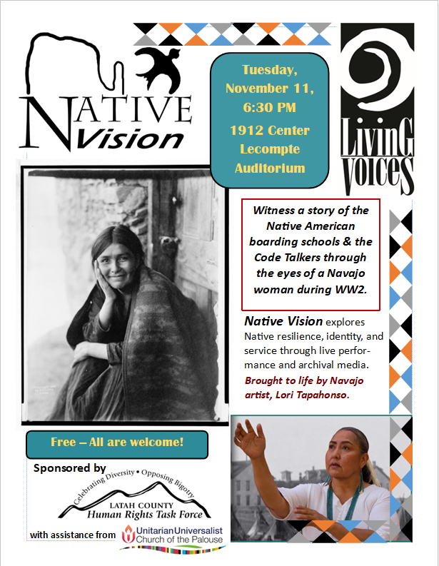 Please join us for “Native Vision”, a Living Voices performance on Tuesday, November 11 at 6:30 pm in the Lecompte Auditorium in the 1912 Center.